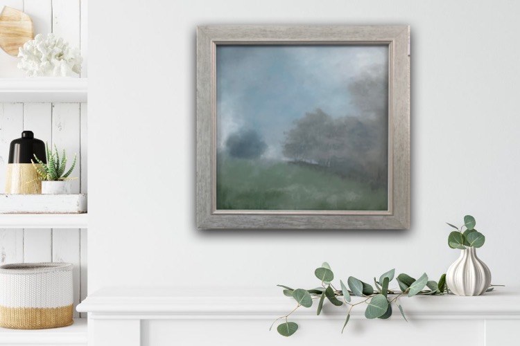 Framed in a washed grey frame with non reflective art glass