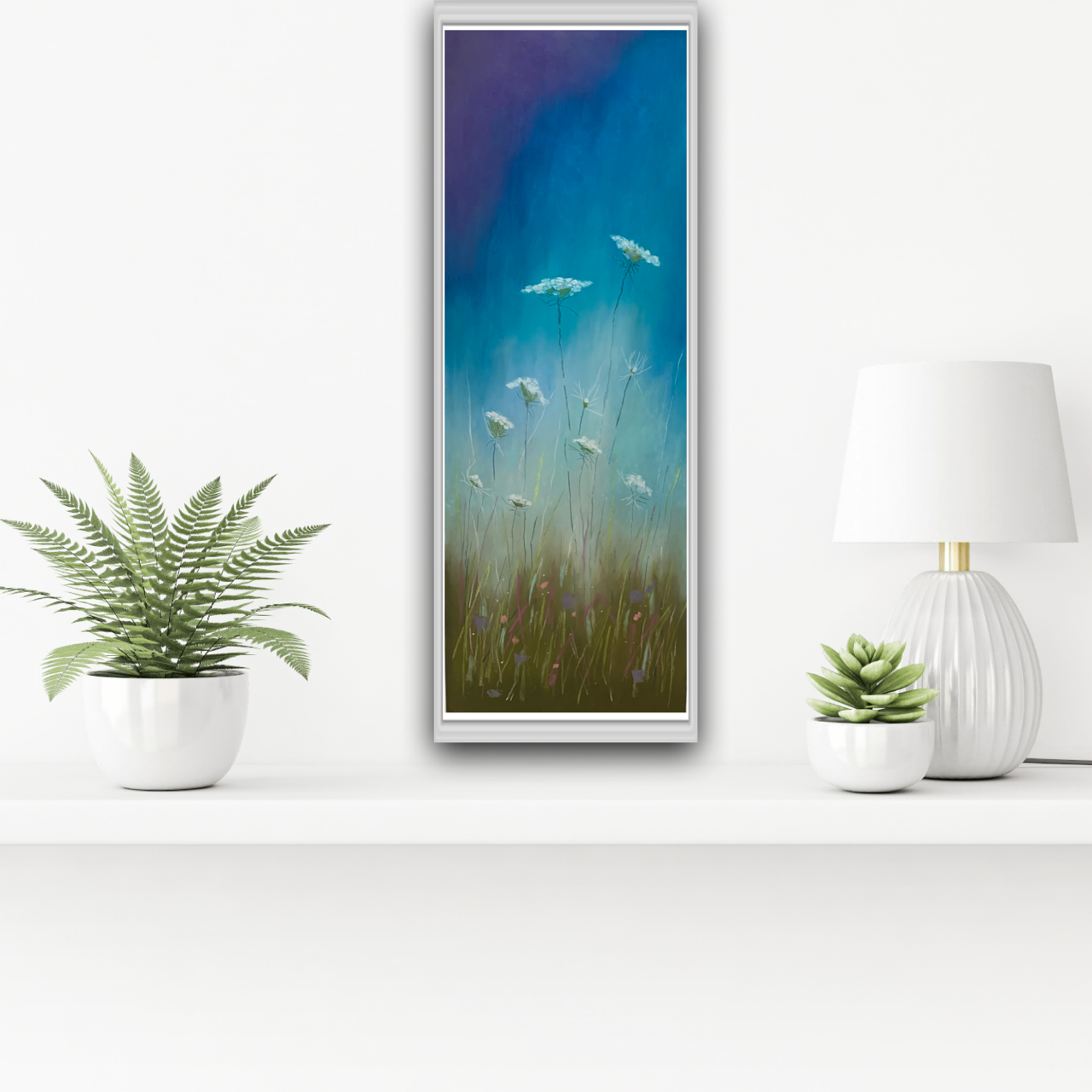 I love to explore with color blocks and then add a natural element. Here I’m playing with Queen Anne’s Lace, my favorite flower!
