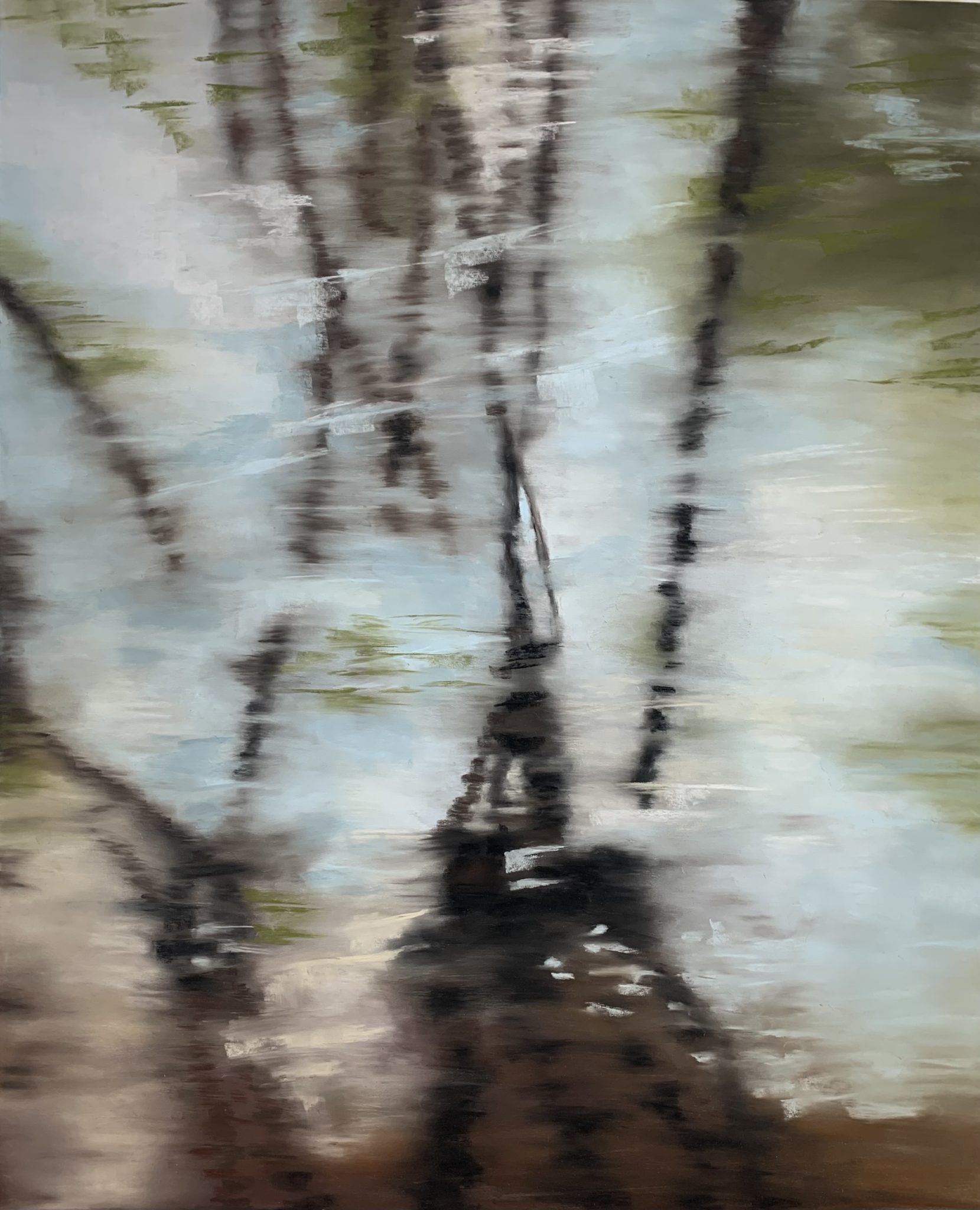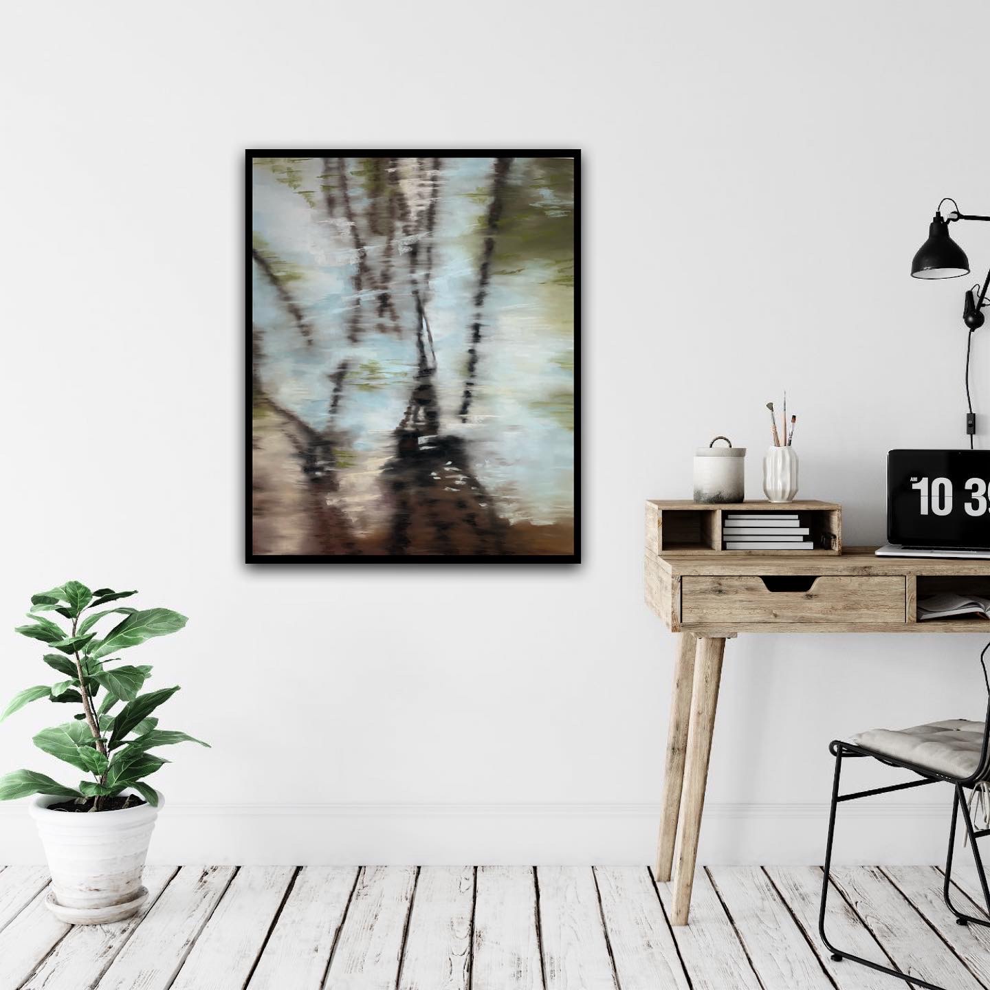 Inspired by the reflection of bare trees in winter an the French Broad River. In this piece I use layers of pastel to create movement and texture. Your space can some alive with the flow of water.